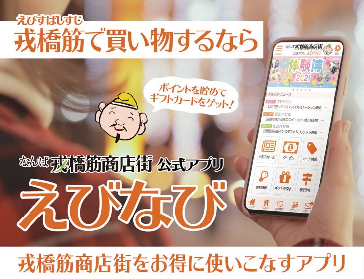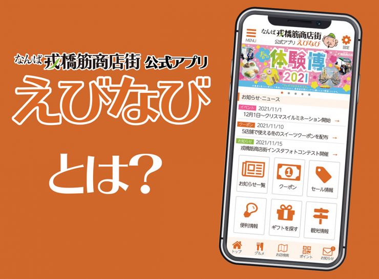 「えびなび」は、戎橋商店街の組合が企画・制作したスマートフォンアプリです。